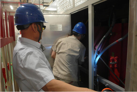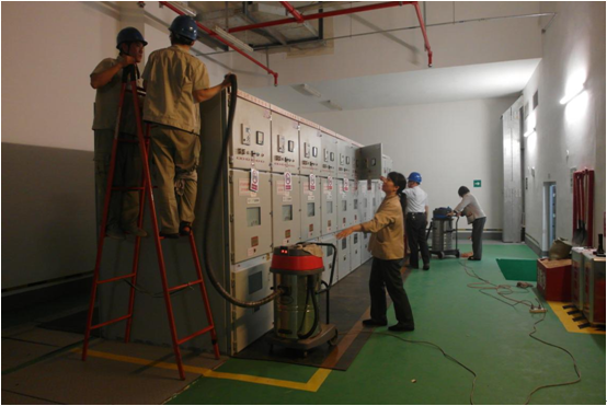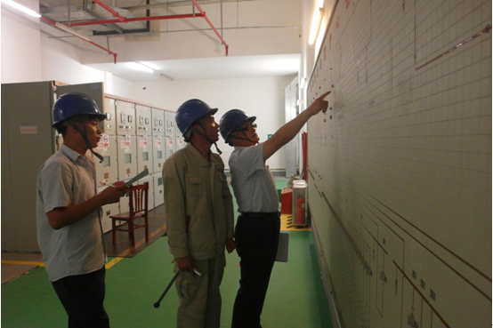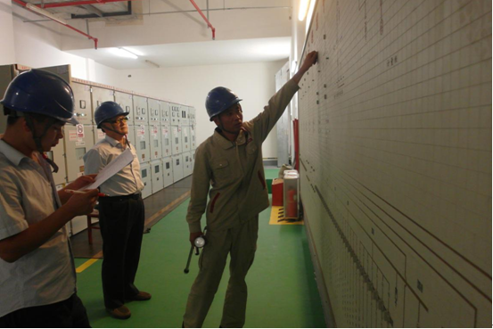 接供電局通知,2015年05月26日上午07點30分至下午19點對10kv魯臺Ⅱ線供電設施進行停電檢修。公管公司會展中心項目部借此機會對配電室人員進行實際操作的檢查和培訓。魯臺會展中心項目部電力檢修組在嚴格遵循供電局停、送電程序的情況下開展了對本館的安全檢修工作。